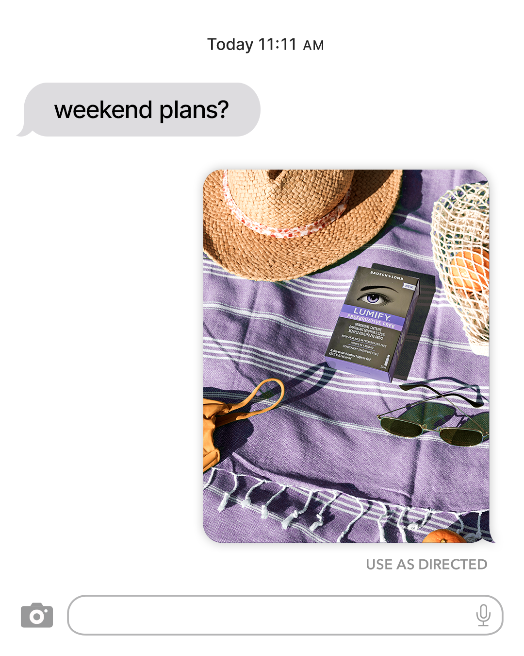 Select Organic Social content for LUMIFY Eye drops, creating more relevant, social first, trendy content.